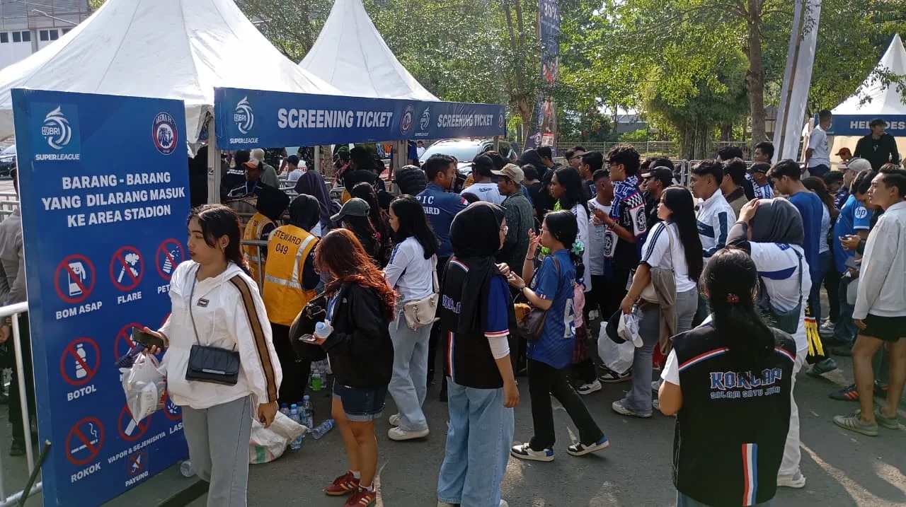 Antusiasme publik Malang Raya begitu terasa sejak pintu stadion dibuka. Sisi tiketing nyaris tak pernah sepi dari antrean suporter, mulai dari Aremania Family, kelompok dewasa, hingga komunitas suporter yang datang berombongan.