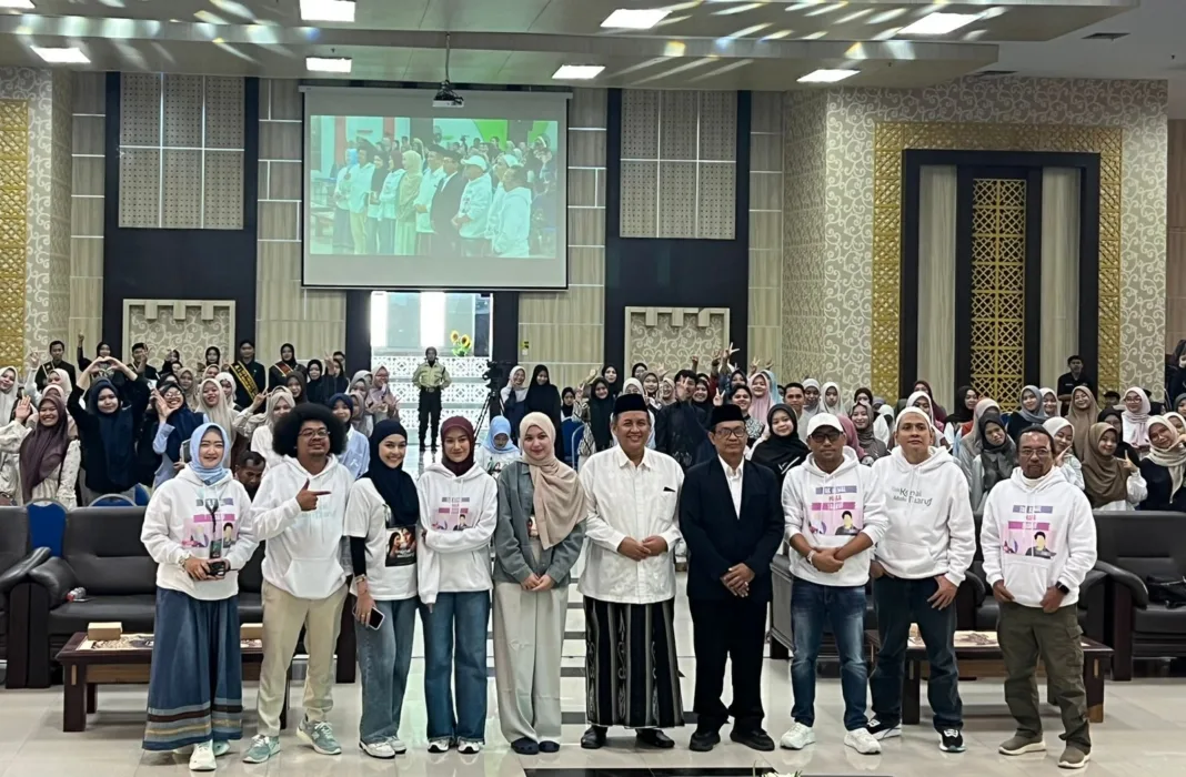 Pemain film, Penulis novel, Produser dan Sutradara film Tak Kenal Maka Taaruf hadir di UIN Malang dalam rangkaian promosi Goes to Campus, Selasa (21/10/2025).