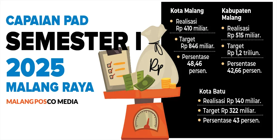 Sementara itu realisasi PAD Semester I Kabupaten Malang tahun 2025 belum sampai 50 persen. Dari target Rp 1,207 triliun, realisasi PAD hingga 30 Juni 2025 baru tercapai 42,66 persen. Atau Rp 515 miliar.