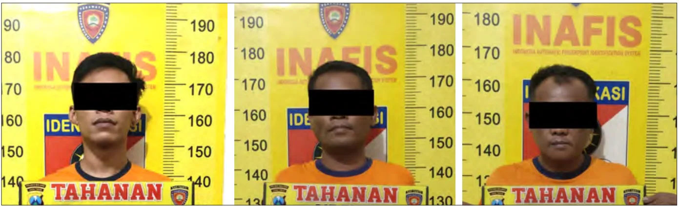 Dijelaskan Bambang bahwa ketiga terduga pelaku ditangkap di lokasi kejadian dengan barang bukti yang berbeda.