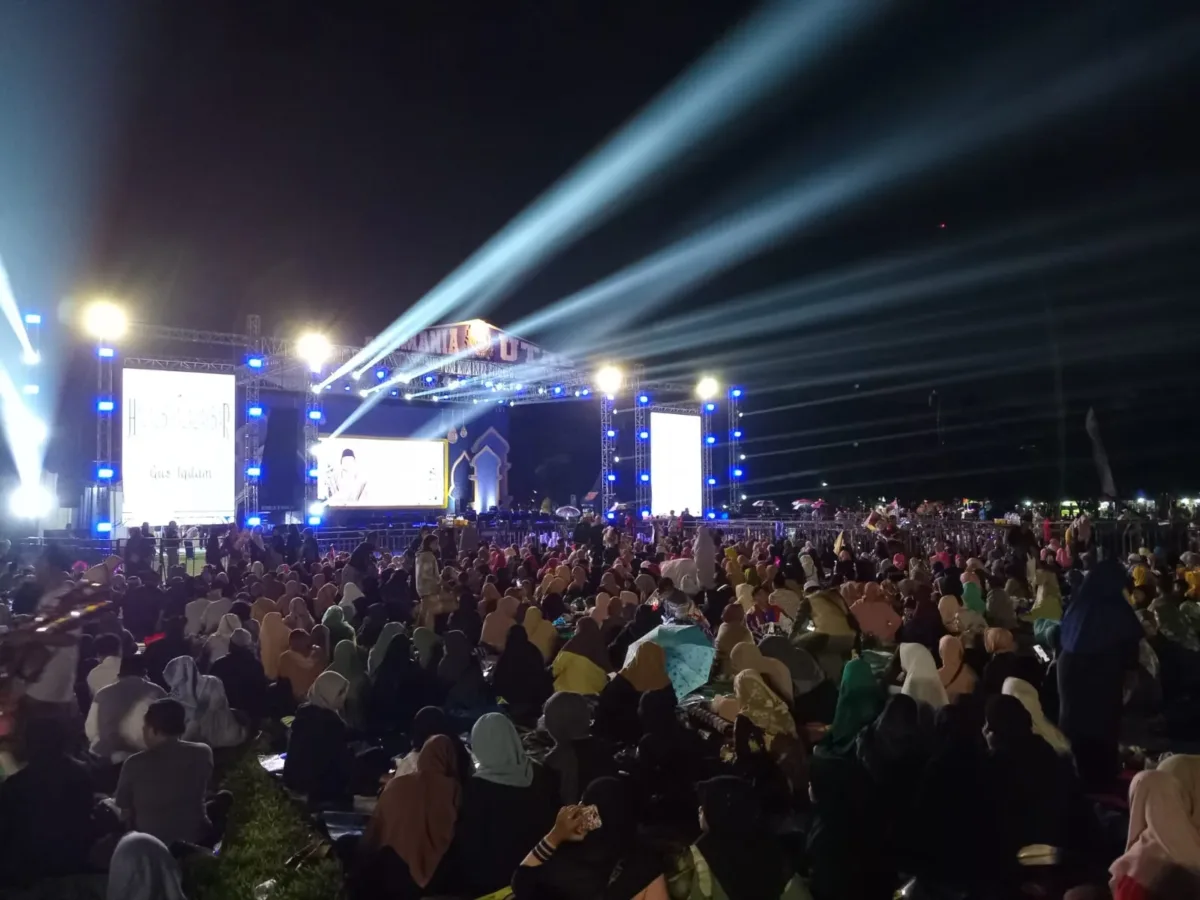 Terlebih Aremania yang hadir bakal diajak bermunajat bersama Hadrah Pusat Sabilu Taubah. Gus Iqdam dijadwalkan akan hadir pukul 22.00 WIB. Saat ini warga terus berdatangan dan memenuhi Lapangan Rampal meskipun sedikit rintik hujan. (ica/nug)