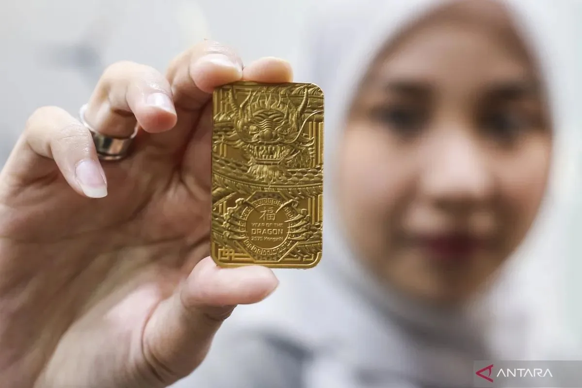 Adapun harga jual kembali (buyback) emas batangan turut turun, yakni Rp1.456.000 per gram.