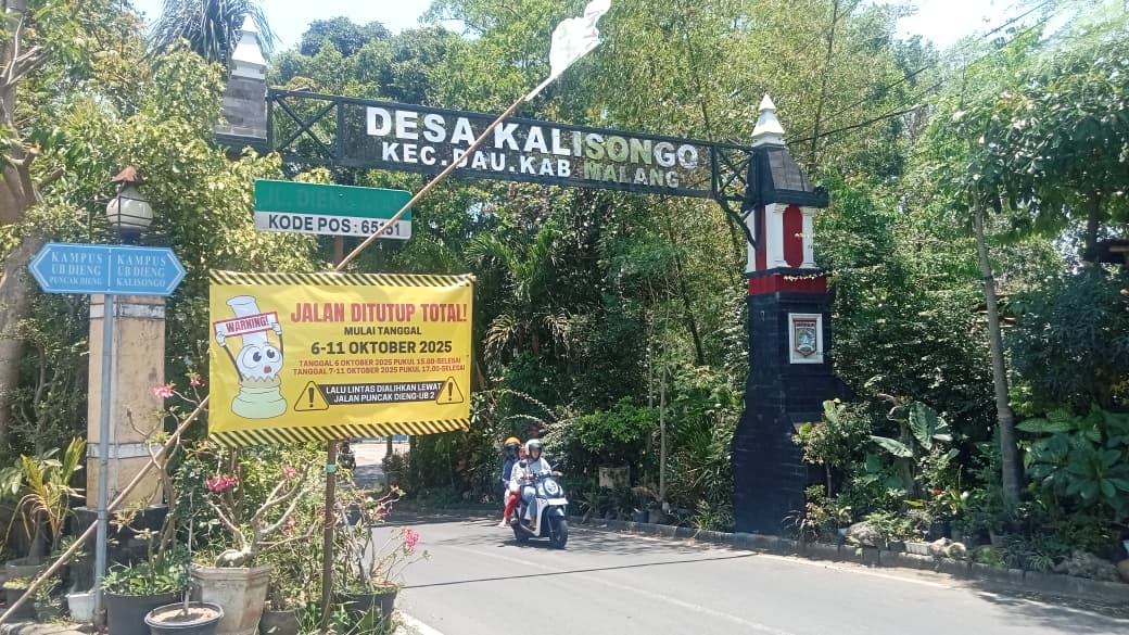 Jalan Dieng Atas akan ditutup total. Sudah ada imbauan terpasang di gapura memasuki Desa Kalisongo. Lalu lintas dialihkan melewati Jalan Puncak Dieng – UB Kampus II.
