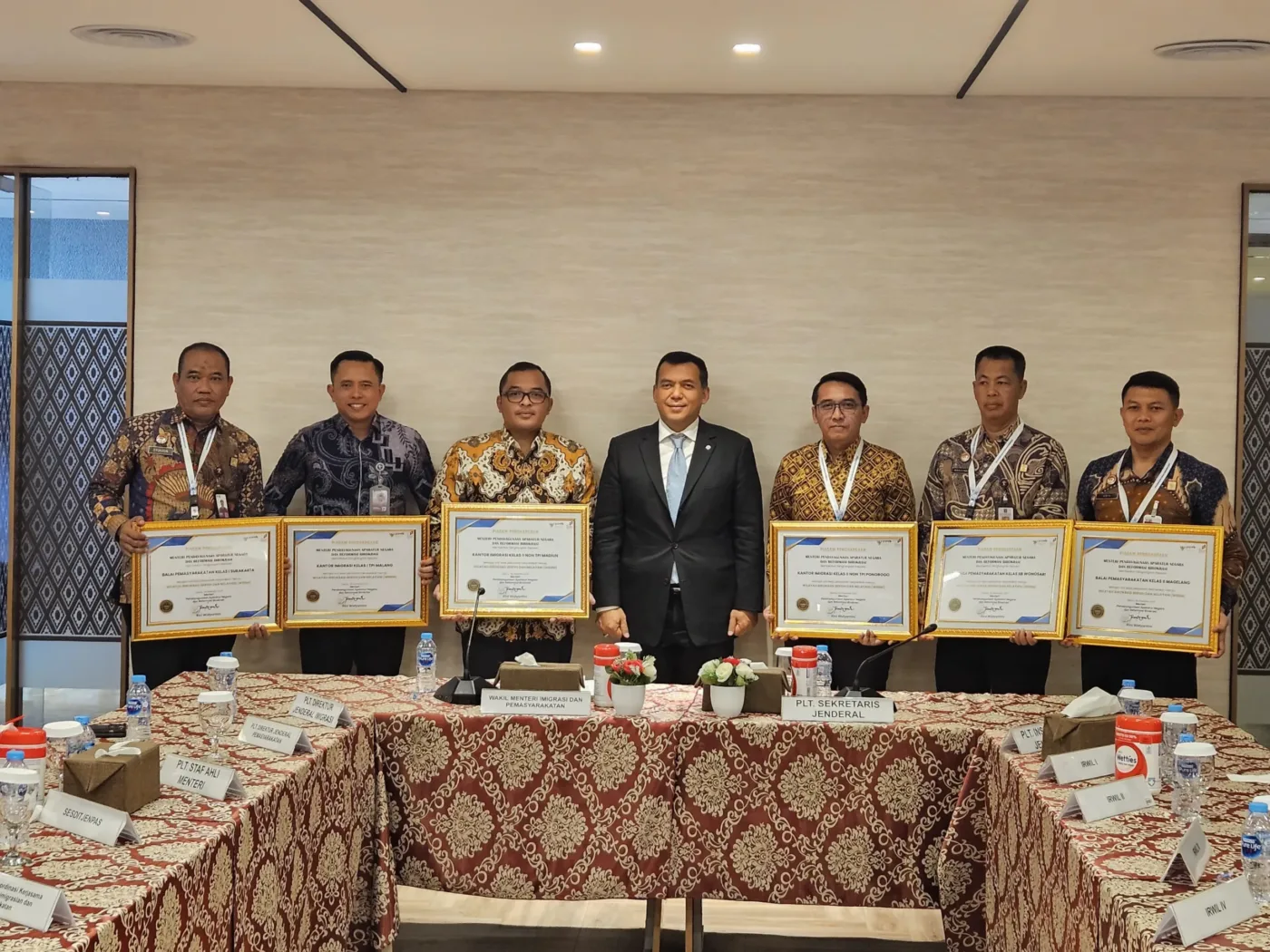 MALANG POSCO MEDIA, JAKARTA – Kantor Imigrasi Kelas 1 TPI Malang mendapatkan penghargaan bergengsi dari Kementerian Pendayagunaan Aparatur Negara dan Reformasi Birokrasi (Kemenpan-RB) sebagai unit kerja pelayanan berpredikat menuju Wilayah Birokrasi Bersih dan Melayani (WBBM) untuk tahun 2024. Penghargaan tersebut diberikan dalam rangkaian acara Satu Dekade Zona Integritas yang berlangsung di Assembly Birawa Hotel Bidakara Jakarta, Rabu (11/12).