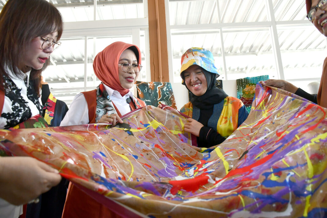 “Misalnya bisa menjahit, butuh mesin obras, itu kami bantu. Jadi tergantung mereka karena potensi di lapangan bervariasi. Kemudian, sudah dua Minggu lalu ini kami memberikan pelatihan di berbagai tempat bersama profesional, misal membatik dengan mengundang pembatik profesional. Supaya goresannya jauh lebih cantik,” beber Fatma.