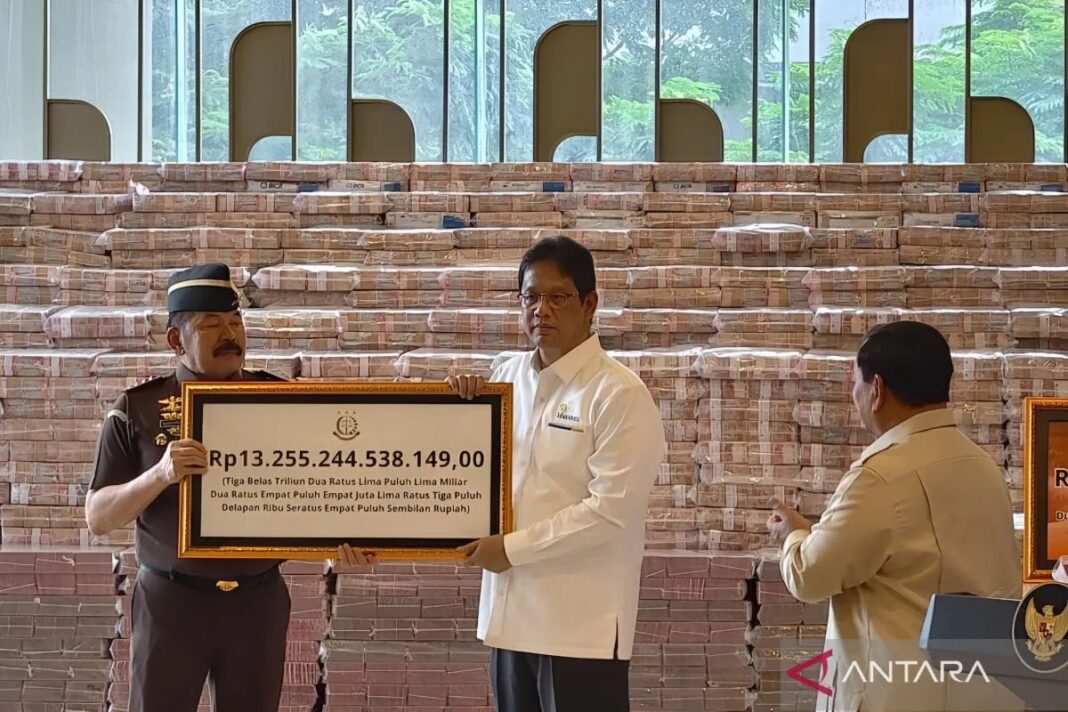 Penyerahan ini dilaksanakan secara simbolis di Gedung Utama Kejaksaan Agung, Jakarta, Senin, oleh Jaksa Agung ST Burhanuddin kepada Menteri Keuangan (Menkeu) Purbaya Yudhi Sadewa dengan disaksikan Presiden RI Prabowo Subianto.