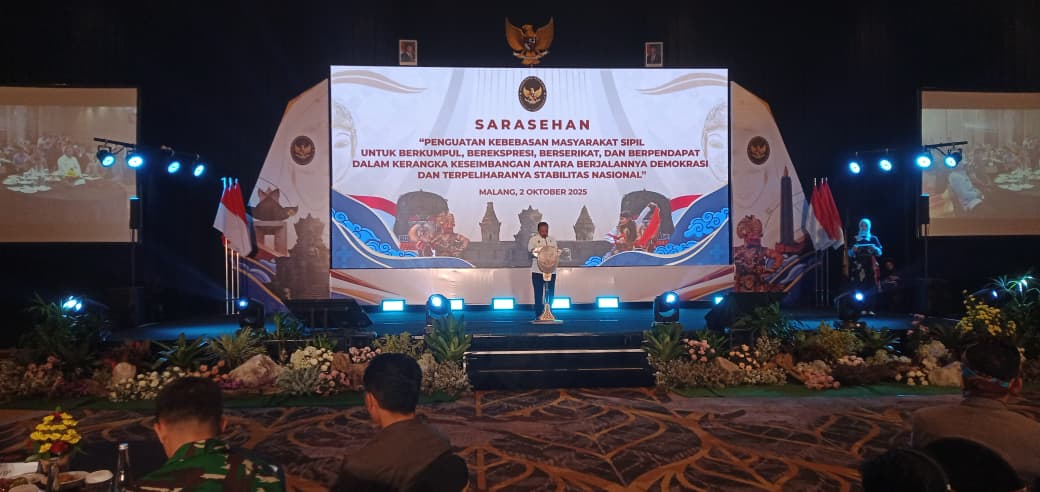 Kepala Bakesbangpol Jawa Timur, Eddy Supriyanto, menyebut sarasehan itu menjadi momentum penting memperkuat sinergi antara pemerintah dan elemen masyarakat. “Organisasi masyarakat itu memiliki irisan besar dengan pemerintah sebagai mitra membangun masyarakat, menjaga kondusifitas, dan kerukunan. Sinergi ini penting agar lingkungan tetap nyaman dan pembangunan ekonomi bisa berjalan baik,” tuturnya.