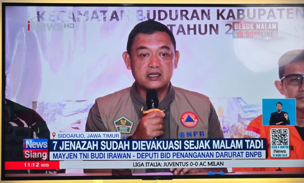 Mayjen TNI Budi Irawan, Deputi Bidang Penanganan Darurat BNPB saat memberi keterangan kepada wartawan di lokasi, Senin pagi.