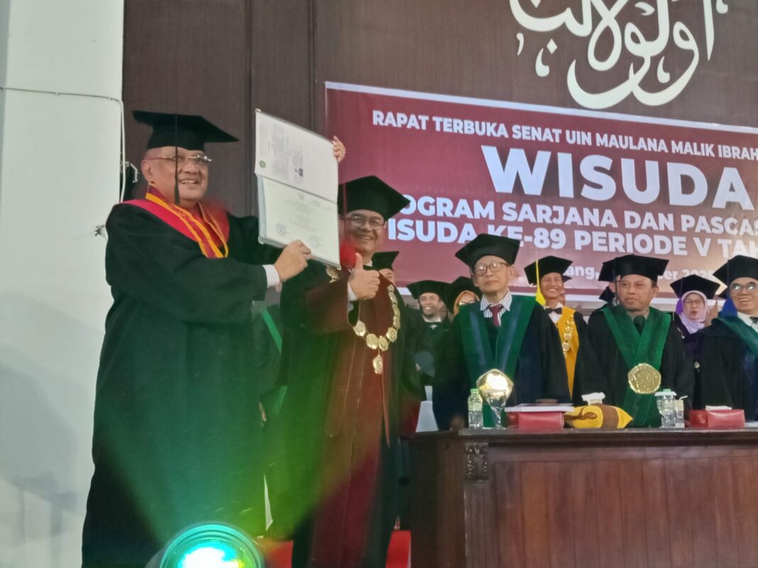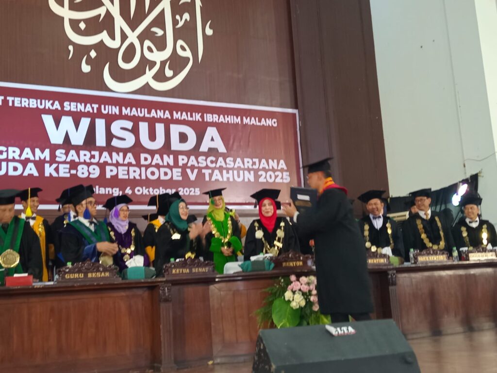 MALANG POSCO MEDIA – Menteri Haji dan Umrah Republik Indonesia (RI) KH. Muhammad Irfan Yusuf resmi menyandang gelar doktornya. Gus Irfan, panggilan Dr. KH. Muhammad Irfan Yusuf, bersama 799 mahasiswa mahasiswi program Sarjana dan Pascasarjana UIN Maulana Malik Ibrahim Malang diwisuda, Sabtu (4/10/25) pagi.
