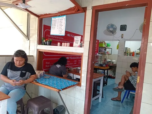 “Mie Nyemek itu ya istilah orang Malang ya kalau sebut mie antara berkuah dan tidak berkuah. Jadi nyemek atau basah yang tak berkuah. Ini kesukaan banyak orang memang karena praktis, kata Megarani, pemilik kedai yang ada di Pasar Tawangmangu ini.