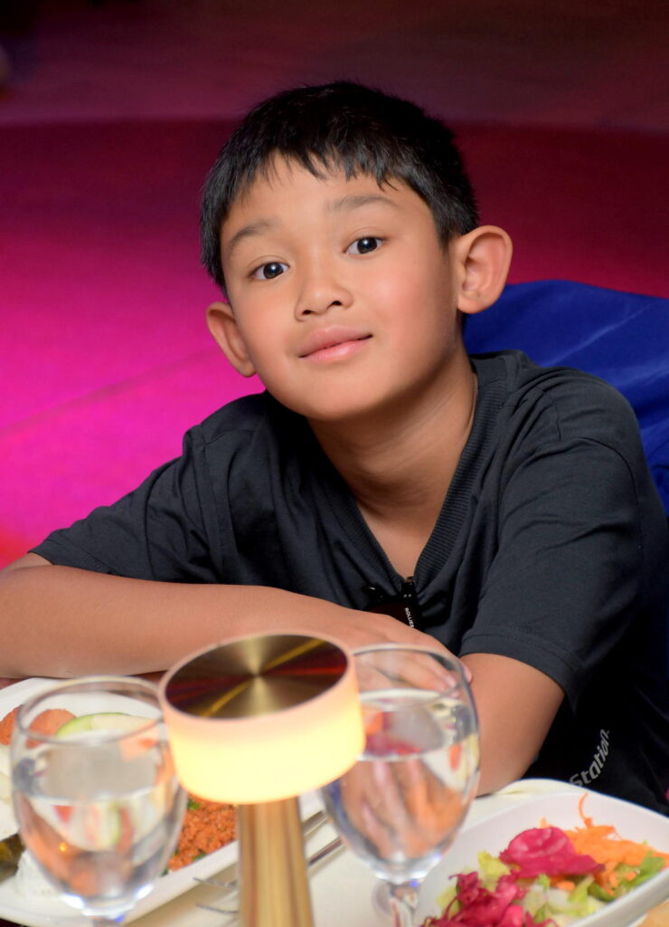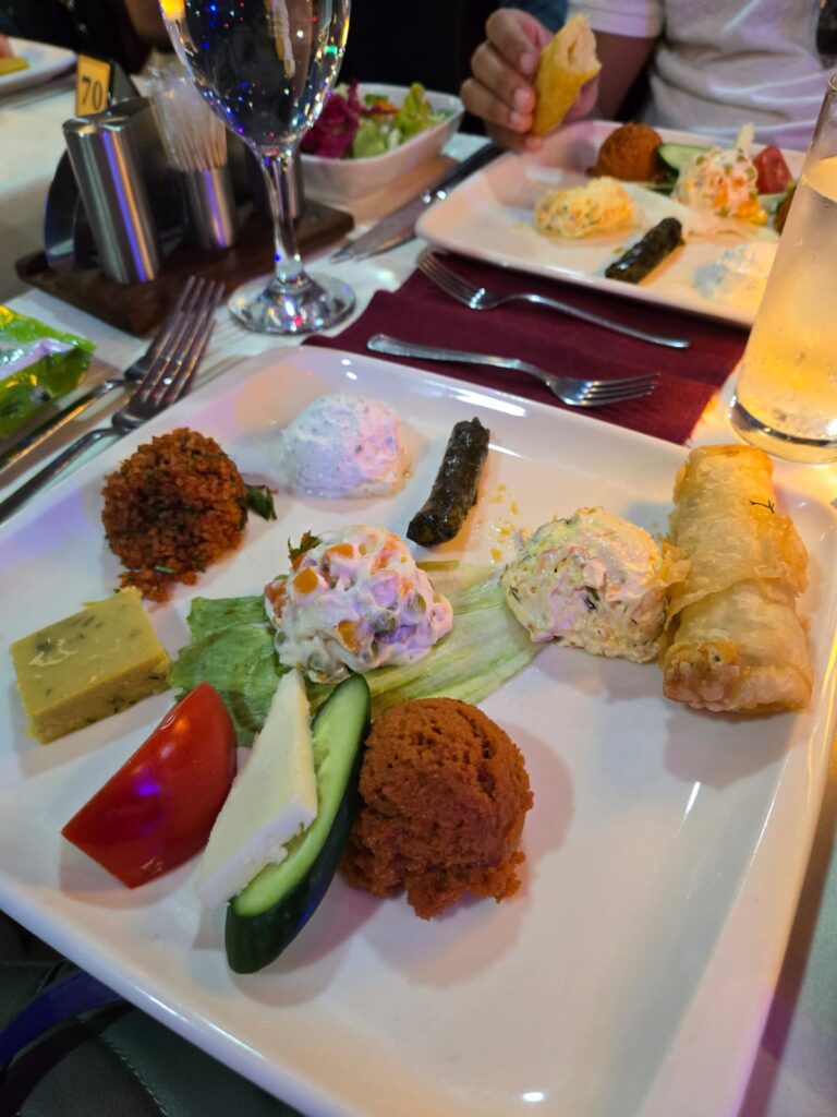 Tiba di cruise langsung disambut ramah oleh para staff. Diantar ke meja yang sudah disiapkan, ditawari mau minum apa, dan mulai dilist memilih ikan atau daging sebagai menu utama. Serta ada fotografer yang mengabadikan momen indah ini. Papi Fariz dan DoubleZ memilih daging sedangkan saya memilih ikan. Meskipun Zygmund tidak membayar tiket namun dia mendapatkan menu komplit semua hidangan.