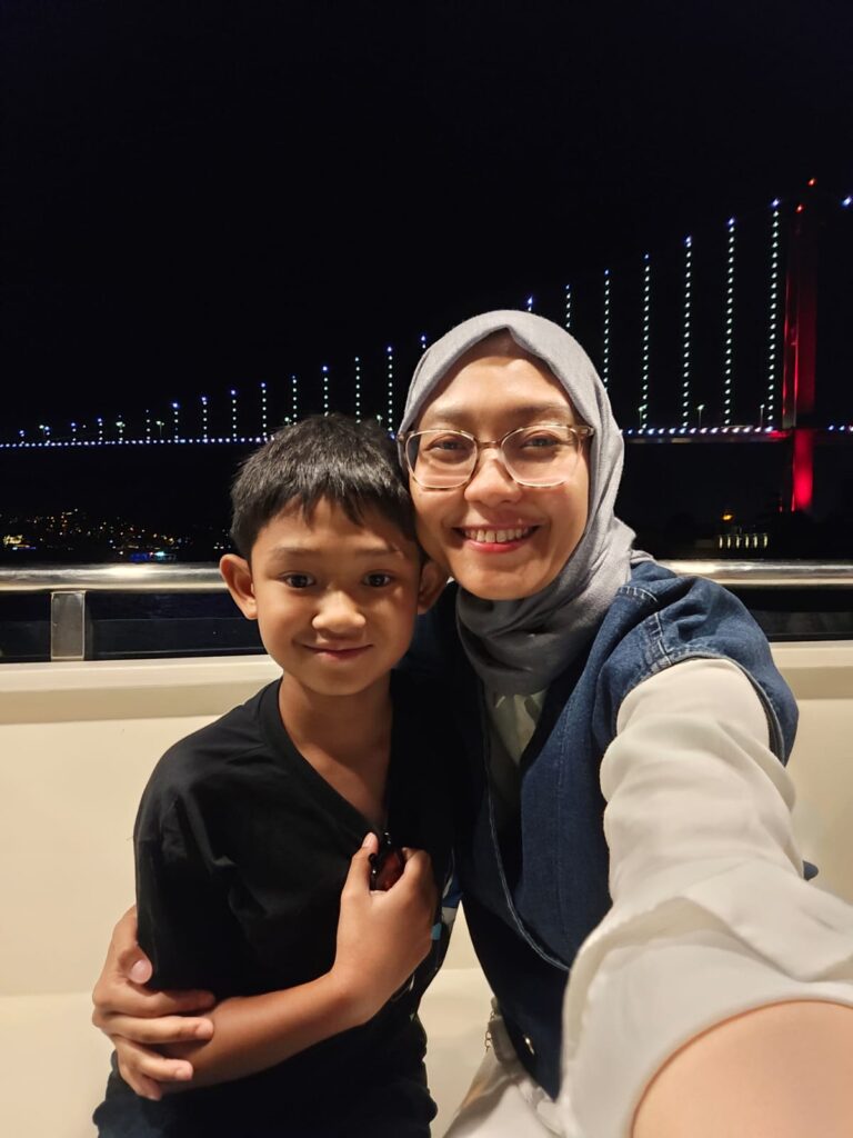 Jalan ninja supaya menikmati liburan tidak berpanas-panasan adalah mengambil paket cruise keluarga. Bosphorus Cruise Istanbul tidak sebesar seperti Royal Caribean Cruise. Total penumpang sekitar 300 – 500 orang untuk sekali perjalanan cruise. Naik cruise adalah salah satu impian keluarga kami. Alhamdulillah mimpiku ini bisa terwujud saat singgah di Istanbul – Turki. Jujur saat menentukan itinerary perjalanan, naik cruise ini tidak masuk ke agenda utama karena masih maju mundur menyesuaikan mood DoubleZ.
