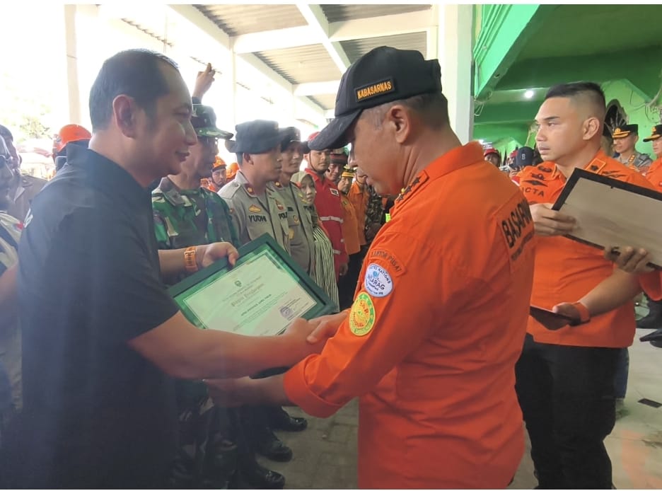 Pada kesempatan tersebut, Kabasarnas juga menyampaikan apresiasi dan menyerahkan piagam penghargaan kepada perwakilan instansi dan unsur SAR yang terlibat dalam operasi sejak hari pertama.