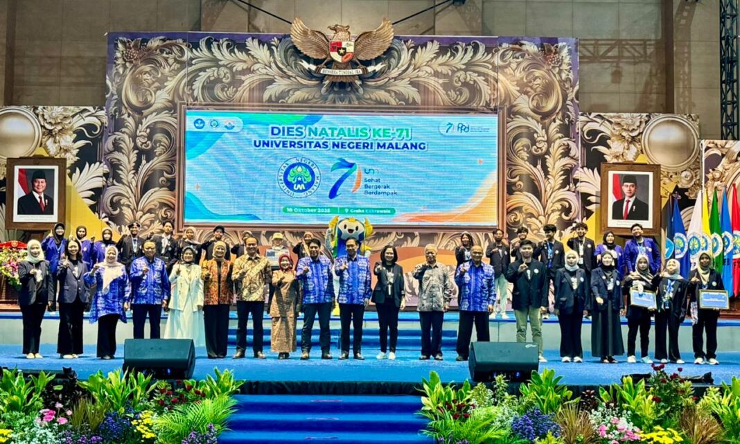 MALANG POSCO MEDIA, MALANG – Universitas Negeri Malang (UM) berkomitmen kuat menjadi kampus yang sehat dan berdampak. Sesuai tema besar yang diangkat UM pada Dies Natalis ke-71 tahun ini : Sehat, Bergerak, Berdampak. Hal itu ditegaskan Rektor UM Prof. Dr. Hariyono, M.Pd pada perayaan Dies Natalis di Graha Cakrawala, Sabtu (18/10) kemarin.