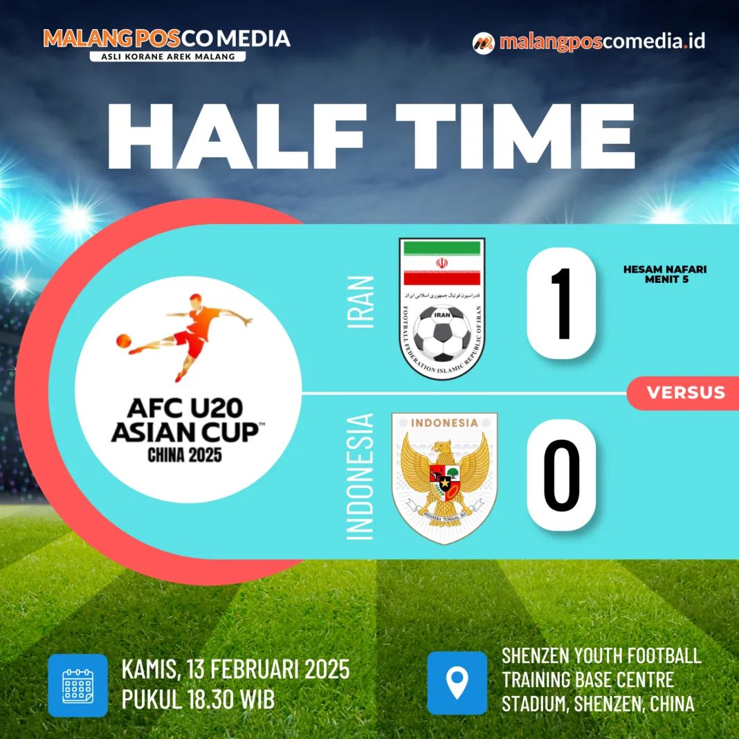 Malang Posco Media Group – Timnas Indonesia U-20 tertinggal 0-1 dari Iran pada babak pertama pada pertandingan Grup C Piala Asia U-20 2025 melawan Australia, di Stadion Shenzen Youth Football Training Base Centre, Shenzhen, China, Kamis.