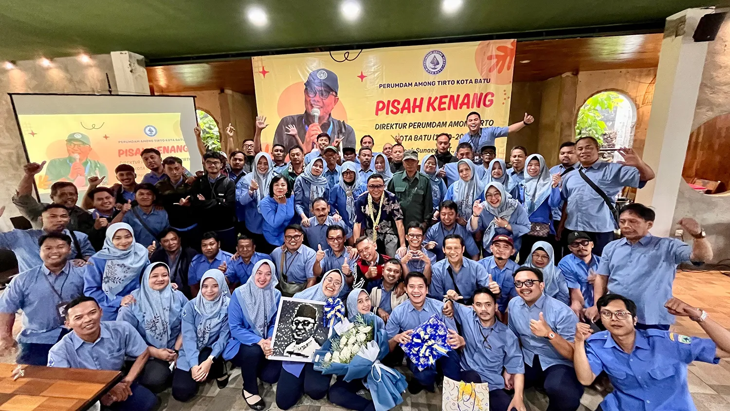 MALANG POSCO MEDIA, KOTA BATU – Karyawan Perusahaan Umum Daerah Air Minum (Perumdam) Among Tirto Kota Batu menggelar acara pisah kenang bersama Edi Sunaedi yang telah menjabat sebagai Direktur Utama perusahaan plat merah ini selama sembilan tahun terakhir. Sokek sapaan akrabnya telah mengakhiri tugas sejak 5 Januari 2025 kemarin.