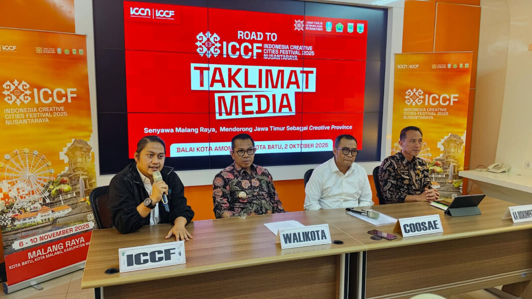 MALANG POSCO MEDIA, KOTA BATU – Persiapan Indonesia Creative Cities Festival (ICCF) Jawa Timur 2025 terus digodok dan semakin matang. Kota Batu sebagai salah satu tuan rumah menggelar preskon di ruang Smart City Balai Kota Among Tani, Kamis (2/10) kemarin.