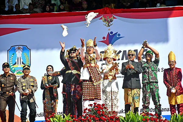 MALANG POSCO MEDIA– Peringatan Hari Pendidikan Nasional (Hardiknas) 2025 di Kota Batu, Jumat (2/5) kemarin berlangsung meriah. Tidak hanya bertabur hadiah, peringatan Hardiknas yang digelar di Stadion Brantas Kota Batu juga diwarnai pagelaran tarian massal. Berjudul Tarian Sang Wiyata Bhakti, tarian ini melibatkan 500 orang. Mereka adalah siswa SMPN 2 dan SMPN 3 Kota Batu.
