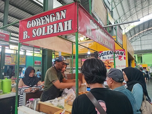 Kelezatan gorengan Bu Solbiah juga terjaga karena selalu digoreng langsung di tempat. “Kami buat di sini langsung goreng. Jadi ya hangat-hangat. Saya datang ke pasar mulai subuh sudah goreng-goreng,” tambahnya.