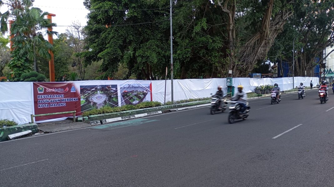 Dari pantauan Malang Posco Media, Selasa (14/10) kemarin, seluruh sisi Alun-Alun Merdeka Kota Malang sudah tertutup pagar berwarna putih dari banner yang dipasang di rangka kayu. Hanya satu sisi di selatan, selebar sekitar enam meter yang masih terbuka dan direncanakan menjadi jalan untuk keluar masuknya kendaraan proyek pembangunan.