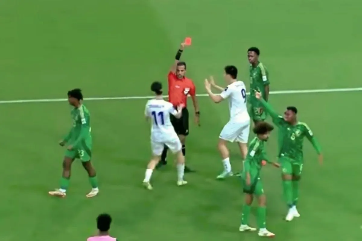 Sang penyerang berlaku tidak sportif setelah ditekel oleh lawan. Tidak terima pergerakannya dihentikan bek Arab Saudi, penyerang bernomor punggung 9 itu menendang wajah lawan, sehingga diberi sanksi oleh wasit.